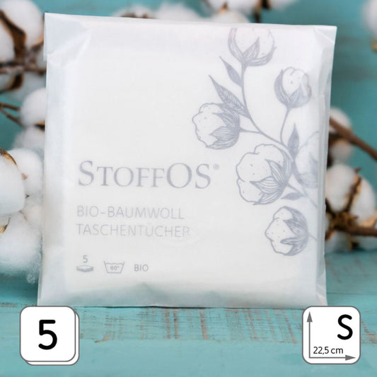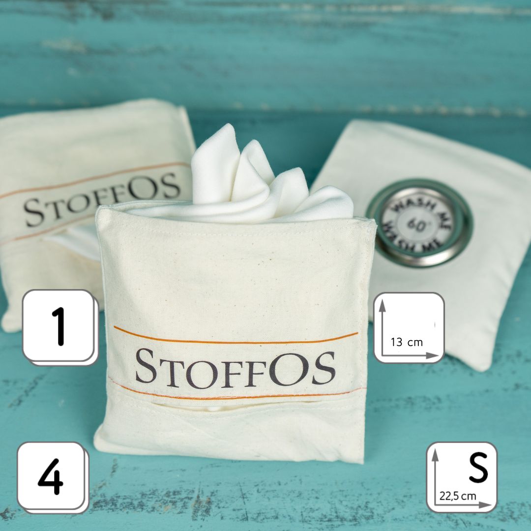 Cloth handkerchiefs, white, set of 5, 22.5 x 22.5 cm StoffOS packaging motif PUR or COTTON TWIG