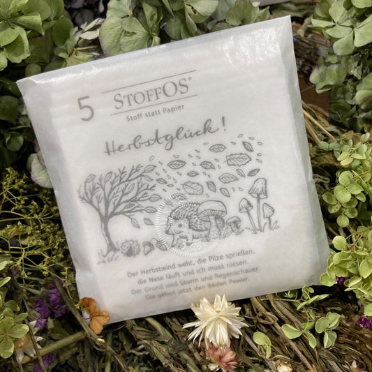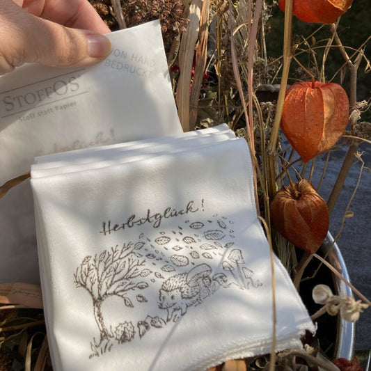 Handkerchiefs HANDPRINTED, set of 5, 22.5 x 22.5 cm StoffOS motif AUTUMN LUCK organic cotton
