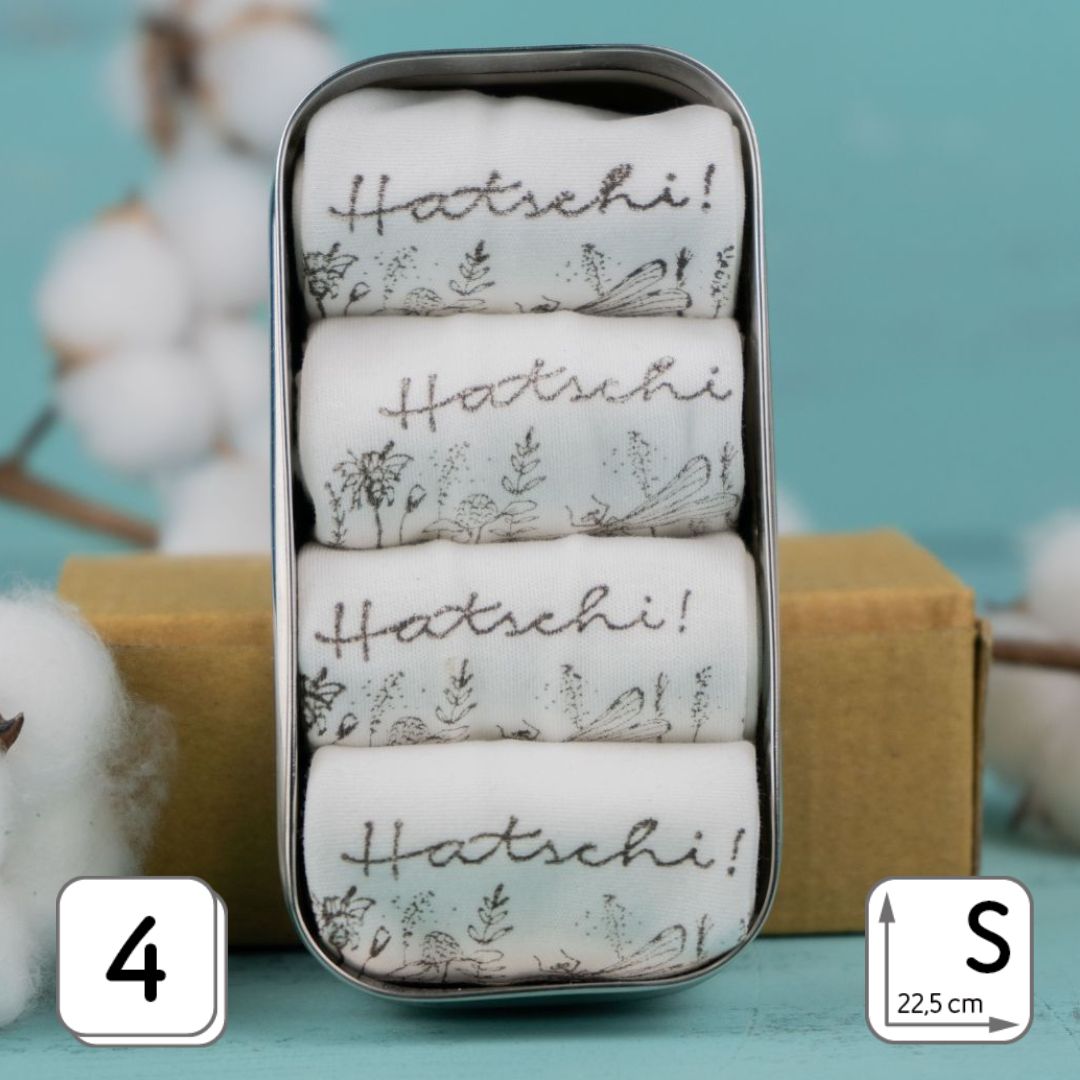 Tiny Edelstahl-Box mit 4 StoffOS mit Hatschi Motiv Unser neues „must have“